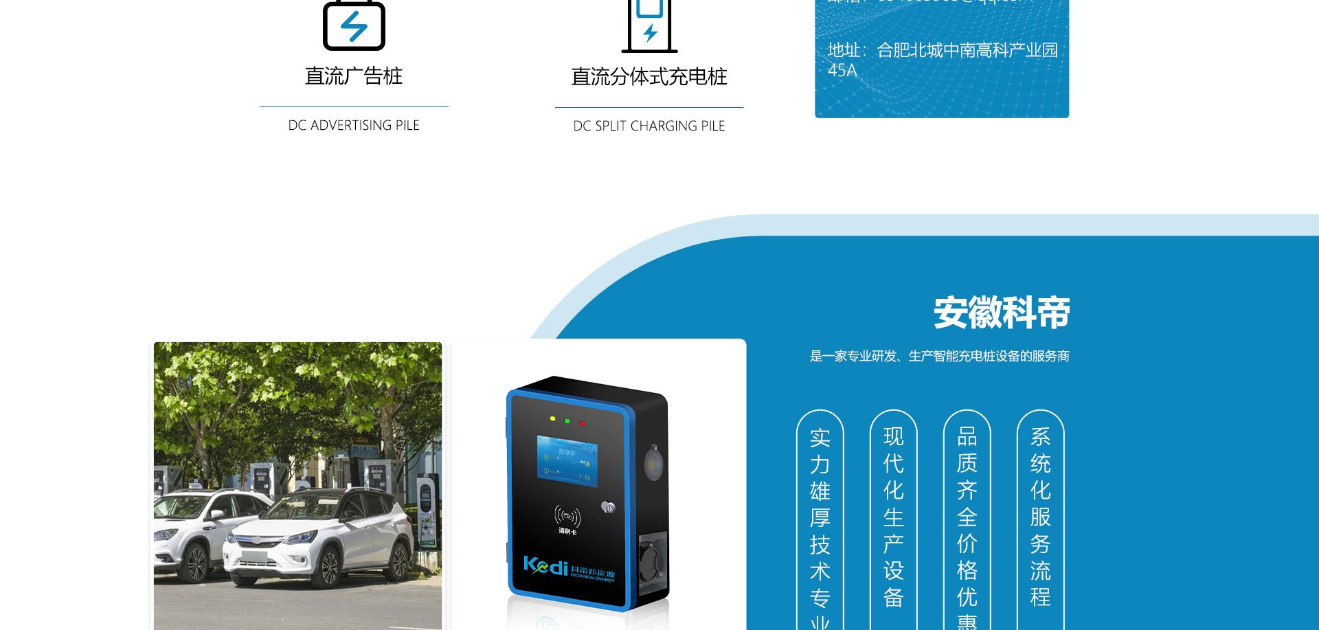 關(guān)于我們安徽科帝新能源科技有限公司坐落于安徽省會(huì)-合肥,是一家研發(fā)、生產(chǎn)智能充電樁設(shè)備,汽車(chē)充電站后臺(tái)監(jiān)控管理系統(tǒng)和生產(chǎn)高壓開(kāi)關(guān)設(shè)備的企業(yè).由專(zhuān)門(mén)的研發(fā)團(tuán)隊(duì)、管理團(tuán)隊(duì)按照現(xiàn)代化企業(yè)制度規(guī)范設(shè)立的有限責(zé)任公司。致力于為能源智能、安全的應(yīng)用和節(jié)能減排提供整體的技術(shù)與產(chǎn)品解決方案??频奂邪l(fā)、設(shè)計(jì)、生產(chǎn)、銷(xiāo)售以及服務(wù)于一體,在電動(dòng)汽車(chē)充電方案,充電設(shè)施建設(shè)和城市配電方面擁有廣泛的技術(shù)研究及經(jīng)驗(yàn)積累,為客戶(hù)提供安全、智能的充電設(shè)備及充電運(yùn)營(yíng)站建設(shè)一體化解決方案。并堅(jiān)持以人為本、質(zhì)量為先、顧客至上、不斷創(chuàng)新”的企業(yè)理念,為能源行業(yè)的發(fā)展、節(jié)能減排做出重大的貢獻(xiàn)。公司擁有豐富的產(chǎn)品種類(lèi),目前科帝已研發(fā)生產(chǎn)了三十多種產(chǎn)品,充電設(shè)備有直流一體式充電樁、直流分體式充電樁、直流廣告樁、交流廣告樁、廣告一體樁、壁掛交直流樁;等多種充電設(shè)備;每一款產(chǎn)品都是精心打造,力求為客戶(hù)提供優(yōu)越的用戶(hù)體驗(yàn)。展望未來(lái)科帝將通過(guò)持續(xù)的自...